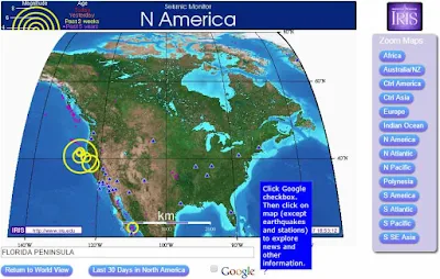 - Los botones debajo del mapa proporcionan ayuda, titulares, lista de terremotos más recientes, temblores recientes notables, placas tectónicas y otros recursos educativos.